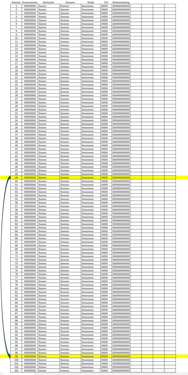 Die Seriennummer wird auch nochmal zur Sicherheit auf die beiliegende Rechnung gestempelt.